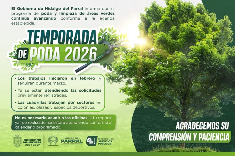 La Dirección de Servicios Públicos Municipales, informa a la ciudadanía sobre el progreso de la Temporada de Poda 2026, una...