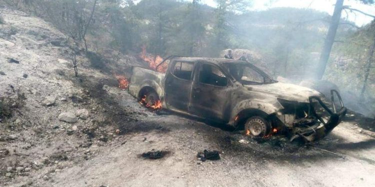 2 camionetas CALCINADAS y 8 MUERTOS, el saldo del ENFRENTAMIENTO en Guachochi