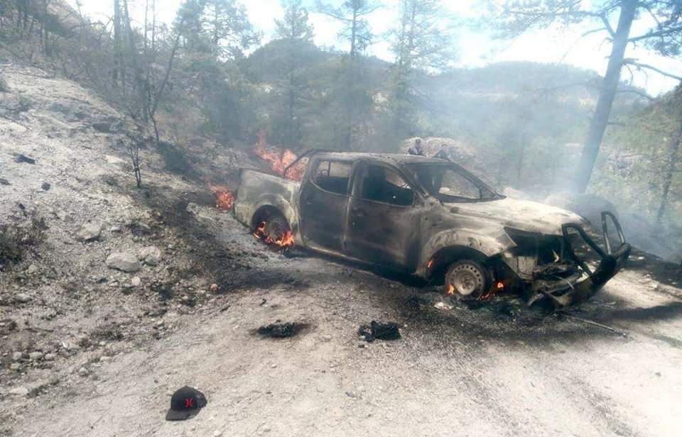 2 camionetas CALCINADAS y 8 MUERTOS, el saldo del ENFRENTAMIENTO en Guachochi