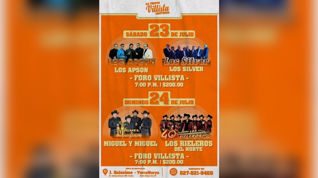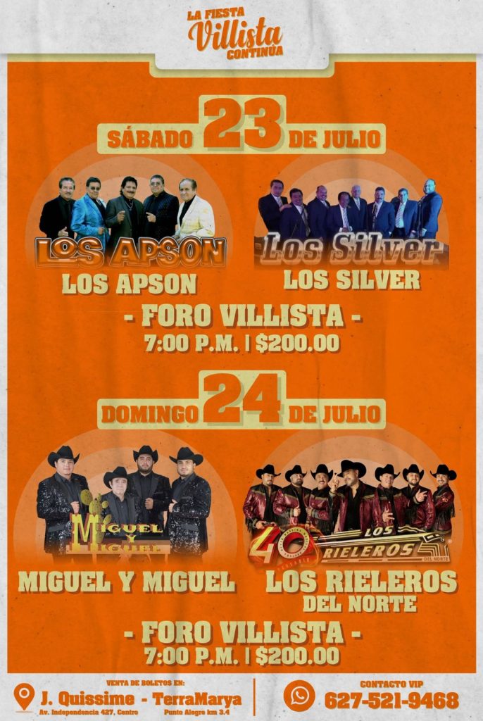 Al concluir las Jornadas Villistas, durante ese fin de semana se presentarán el día 23 de julio Los Apson; posteriormente los Silver, mismos que cautivarán y enamorarán con sus canciones del recuerdo a los parralenses.