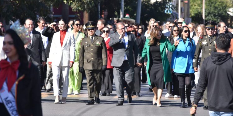 El presidente municipal de Parral, Chava Calderón presidió el desfile cívico-deportivo-militar, conmemorativo del CXIV Aniversario del Inicio de la Revolución Mexicana, que se desarrolló por las principales calles del centro de la ciudad, en el cual intervinieron cerca 4 mil participantes, más los elementos del Ejército Mexicano y Guardia Nacional.