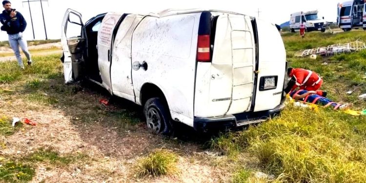 Los hechos se registraron cerca de las 13:00 horas de este sábado, tratándose de una Chevrolet Express de color blanca, la cual quedo destrozada justo al pasar ciudad Jiménez.