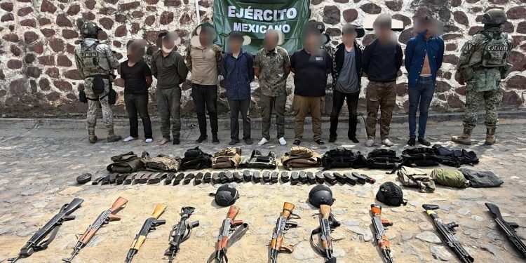 La comandancia de la XI Región Militar y 42/a. Zona Militar informó que, en cumplimiento a lo establecido en la Estrategia Nacional de Seguridad Pública, el 6 de marzo, integrantes de la Guardia Nacional, en coordinación con personal del Ejército Mexicano y autoridades de los tres órdenes de gobierno, al realizar patrullajes de vigilancia y reconocimientos terrestres en los límites de los estados de Chihuahua y Sinaloa, detuvieron a 9 personas y aseguraron lo siguiente: