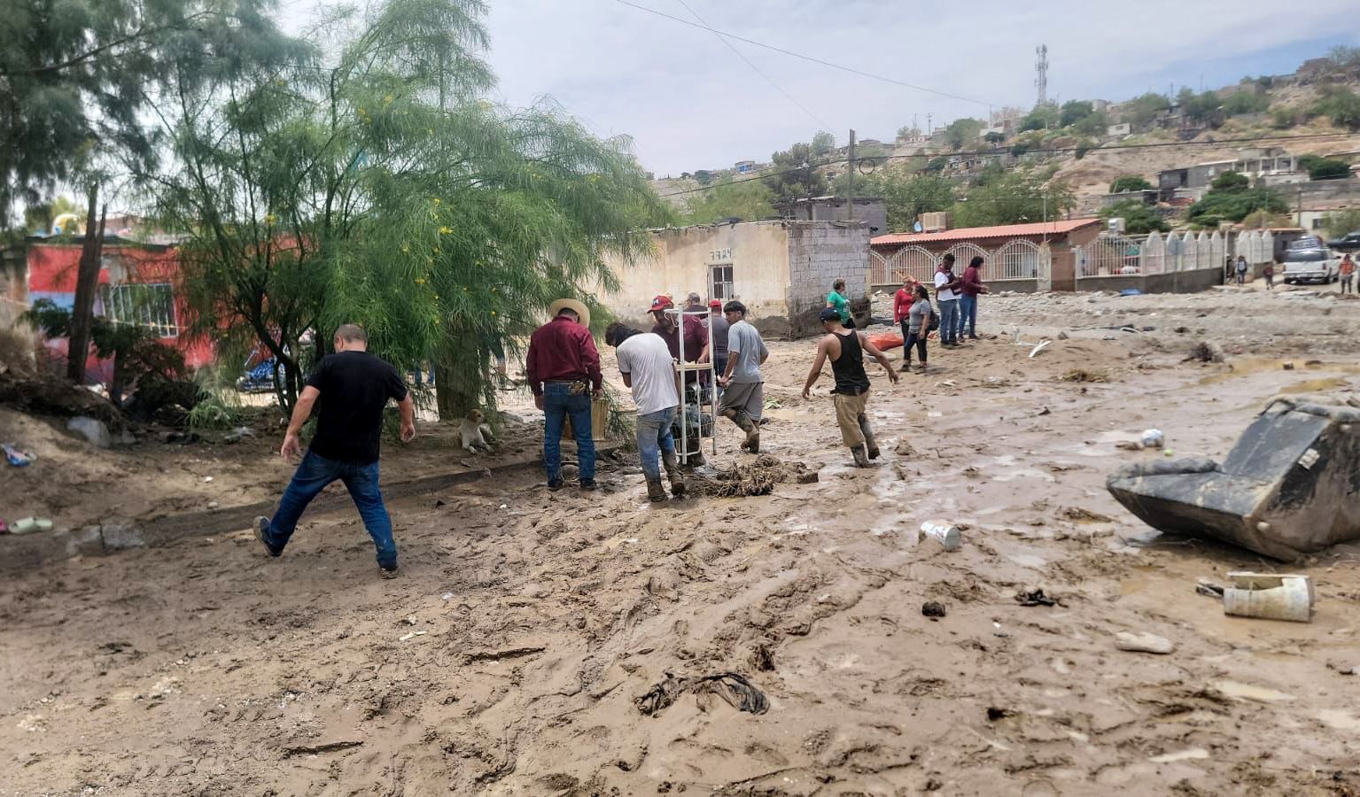 Por parte de la Secretaría de Comunicaciones y Obras Públicas (SCOP), se llevó maquinaria para apoyar en los trabajos de desazolve en calles y viviendas, mientras que la Junta Municipal de Agua y Saneamiento (JMAS Juárez), apoyó con cuatro retroexcavadoras y dompes, para ayudar en las labores de limpieza.