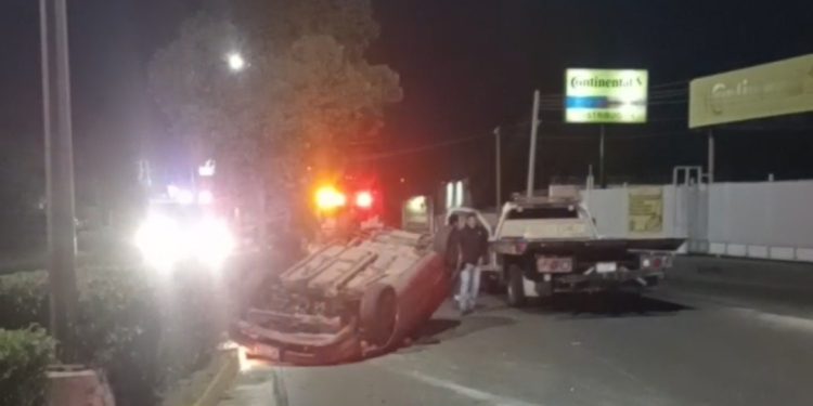 A las 2:00 de la madrugada de este domingo se registró un accidente automovilístico a la altura del acceso al fraccionamiento Las Fuentes Primera Etapa, en la parte alta de la avenida Independencia.