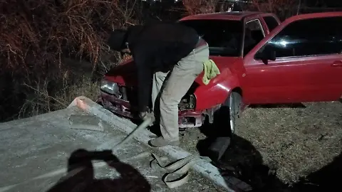 El reporte al 911 se recibió a ñas 6:30 de la tarde, siendo atendido por agentes de Vialidad de la Dirección de Seguridad Pública Municipal, quienes encontraron un Volkswagen Golf ’95 color rojo con un fuerte golpe frontal, producto del choque contra el objeto fijo propiedad del Municipio.
