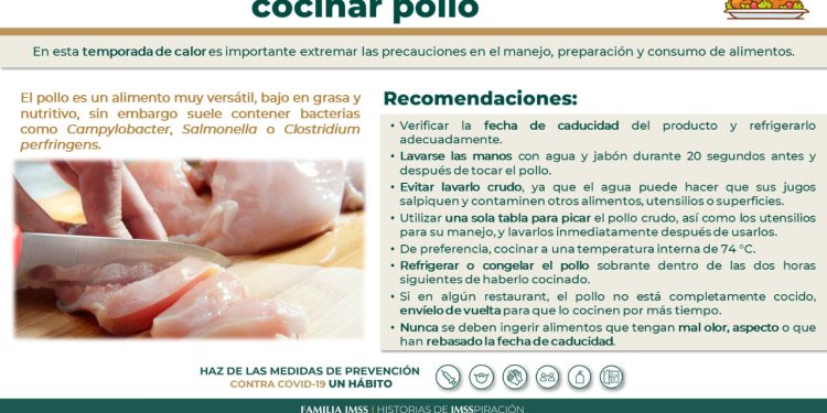El Instituto Mexicano del Seguro Social (IMSS) en Chihuahua, informa a la población la importancia de manejar y cocinar correctamente el pollo, ya que de no hacerlo se pone en riesgo la salud al provocar una intoxicación alimentaria.