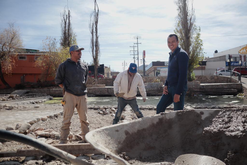 “El personal de Obras Públicas está realizando los últimos trabajos de relleno con material fino en puntos donde la corriente del agua socavó los andadores y jardines. Esto a lo largo de todo el paseo, es decir, desde el puente Sobarzo hasta el vado de la calle Libertad e incluso el empedrado que se dirige a la Talleres, el cual también es objeto de limpieza con personal de empleo temporal”, destacó el Edil.