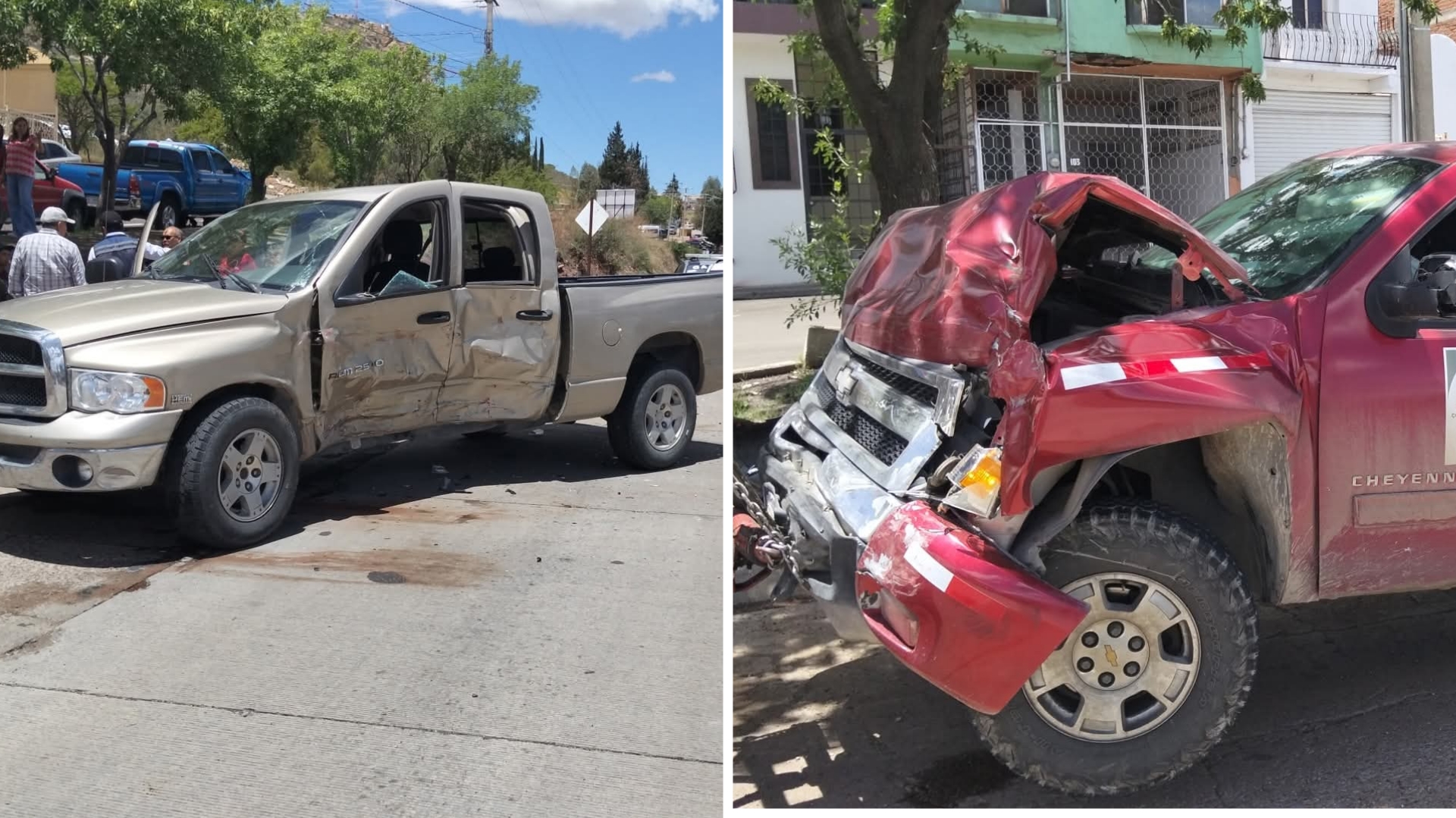 Los vehículos involucrados fueron una Dodge RAM color dorado, modelo 2004, y una Chevrolet Cheyenne color guinda, modelo 2010.