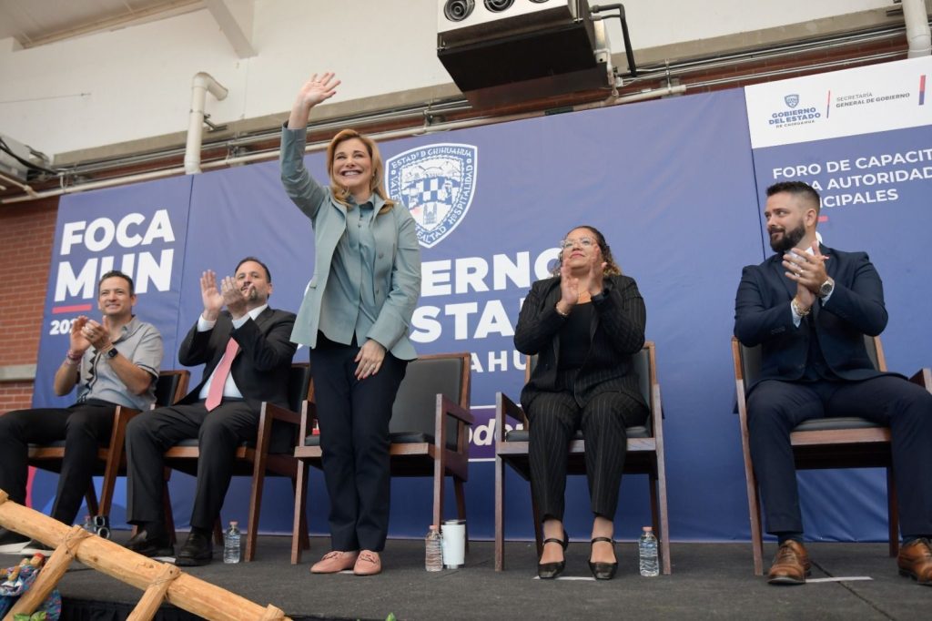 La gobernadora Maru Campos inauguró en las instalaciones de la Universidad del Valle de México, el Foro de Capacitación para Autoridades Municipales (Focamun), por medio del cual se acercan los servicios y programas del Gobierno del Estado a los 67 municipios, en beneficio de los chihuahuenses.