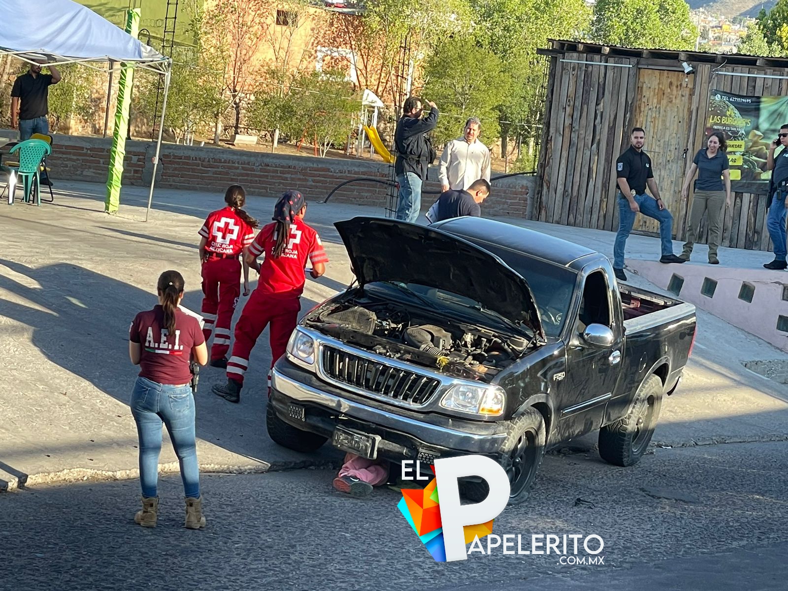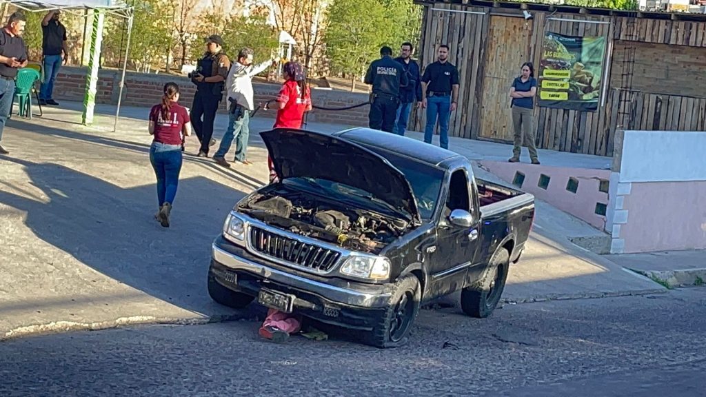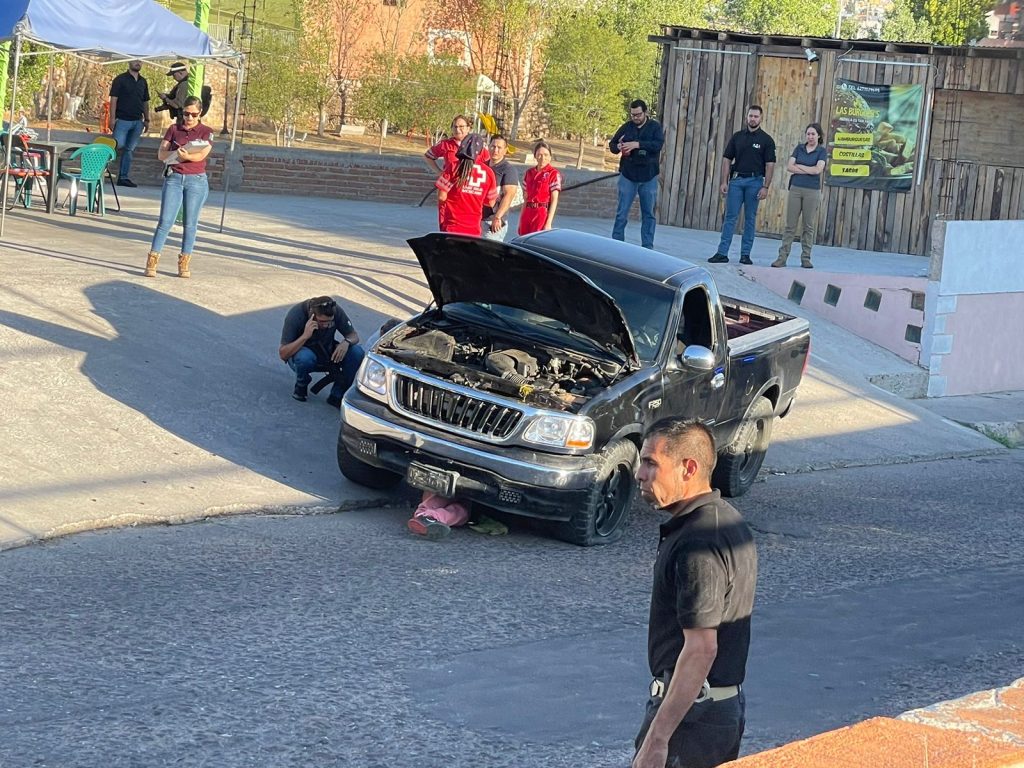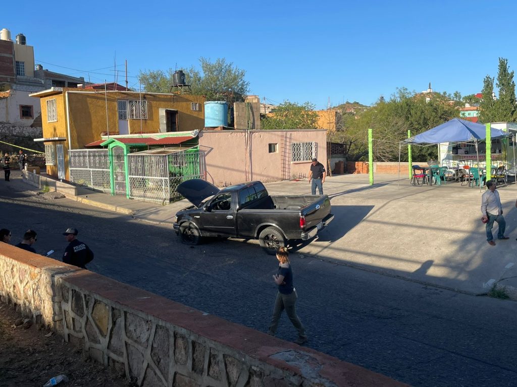 Vecinos reportaron al sistema de emergencias 911 sobre la detonación de armas de fuego a plena tarde de este sábado, por lo que, de inmediato, se trasladaron las autoridades al lugar, encontrando una pickup marca Ford, color negra, de modelo atrasado, la cual estaba con el cofre abierto.