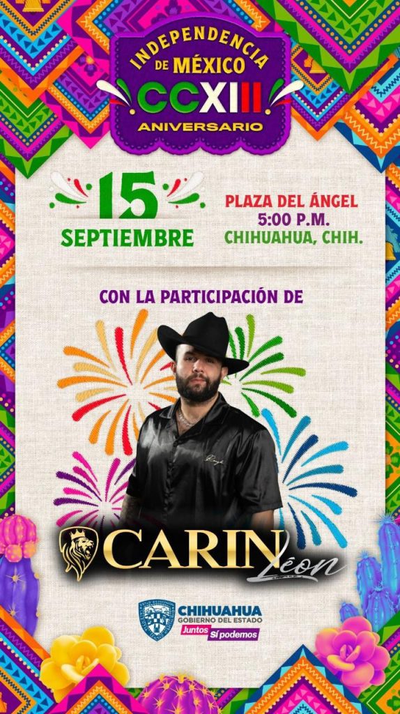 Conocedora de la importancia que el 15 de septiembre tiene para la ciudadanía y sensible a las peticiones de esta, la gobernadora Maru Campos informó que será el cantante Carín León, quien cierre con broche de oro las actividades artísticas de esa noche festiva.