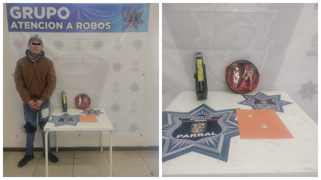 A dicho sujeto al ser abordado por los agentes, se le encontraron unos cables para pasar corriente y un gato hidráulico, objetos que reconoció haberlos tomado hace un par de días de un automóvil estacionado en la calle Mártires del 3 de Mayo.