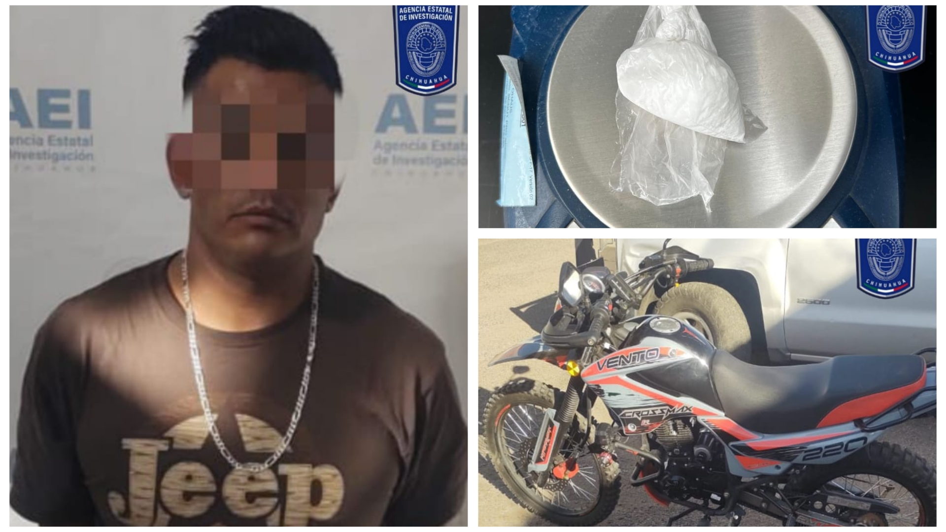 Fue detenido en los términos de la flagrancia, cuando los Policías Investigadores realizaban recorridos para la disuasión de delitos sobre la calle Miguel Trillo, de la colonia Héroes de la Revolución, en la ciudad de Parral.