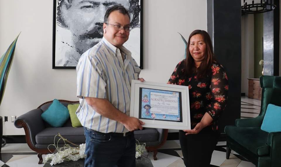 Personal docente y alumnos de la escuela primaria Mati-Sike de la comunidad de San Andrés, entregaron un reconocimiento a Otto Valles, en agradecimiento por el apoyo brindado para llevar a cabo una visita a las instalaciones del 76 Batallón de Infantería.
