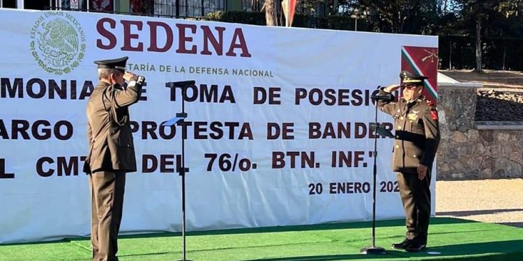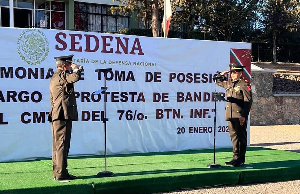 Ayer viernes 20 de enero, asumió como comandante del 76 Batallón de Infantería, el coronel Agustín Velasco Sánchez, en sustitución de Francisco Aldaba Macías, quien fue enviado al estado de Guerrero, luego de que apenas en abril del año pasado había sido presentado aquí en Parral.