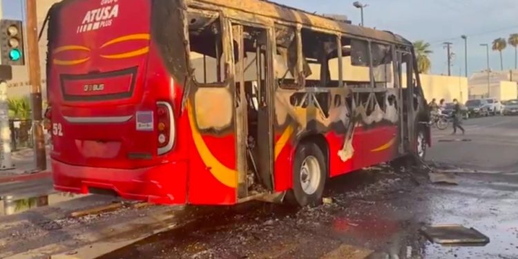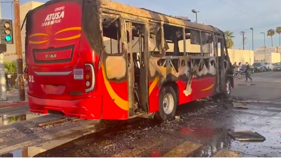 En Tijuana, en la carretera rumbo a la garita a San Diego, el humo de un autobús incendiado tapó la visibilidad de los automovilistas.