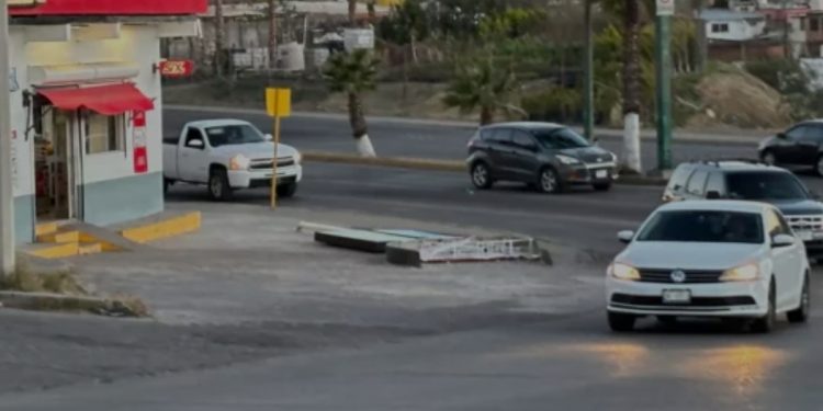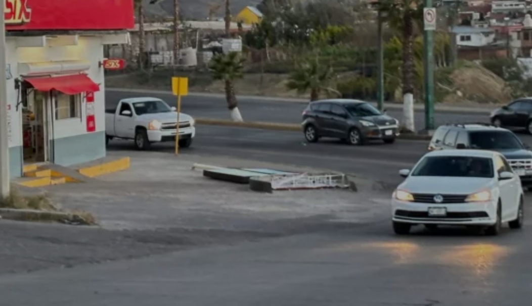 Los fuertes vientos de hasta 75 km/h que se han presentado este domingo en Parral, derribaron un anuncio espectacular que se encontraba justo en el crucero de las avenidas Centauro del Norte y Niños Héroes.