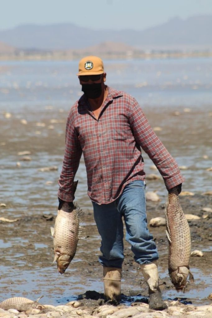 Los niveles de sequía en el Estado llegaron a un límite extremo en últimos días, pues la Laguna de Bustillos se ha quedado sin agua y miles de peses han muerto en la tierra