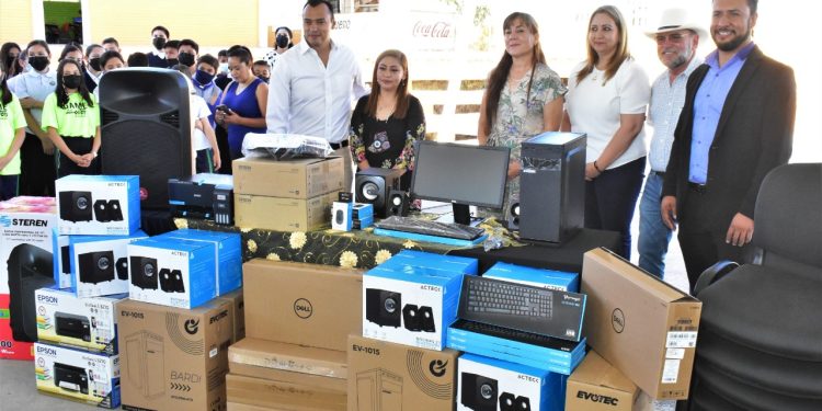 Señaló que gracias a ese importante esfuerzo, esta mañana se pudieron entregar a la primaria “Josefa Solís de Lozoya” equipo consistente en cinco computadoras, doce bocinas para computadora, dos proyectores, dos impresoras, 12 pizarrones y una bocina, que permitirán mejorar la calidad y condiciones de educación de las niñas y niños del plantel.