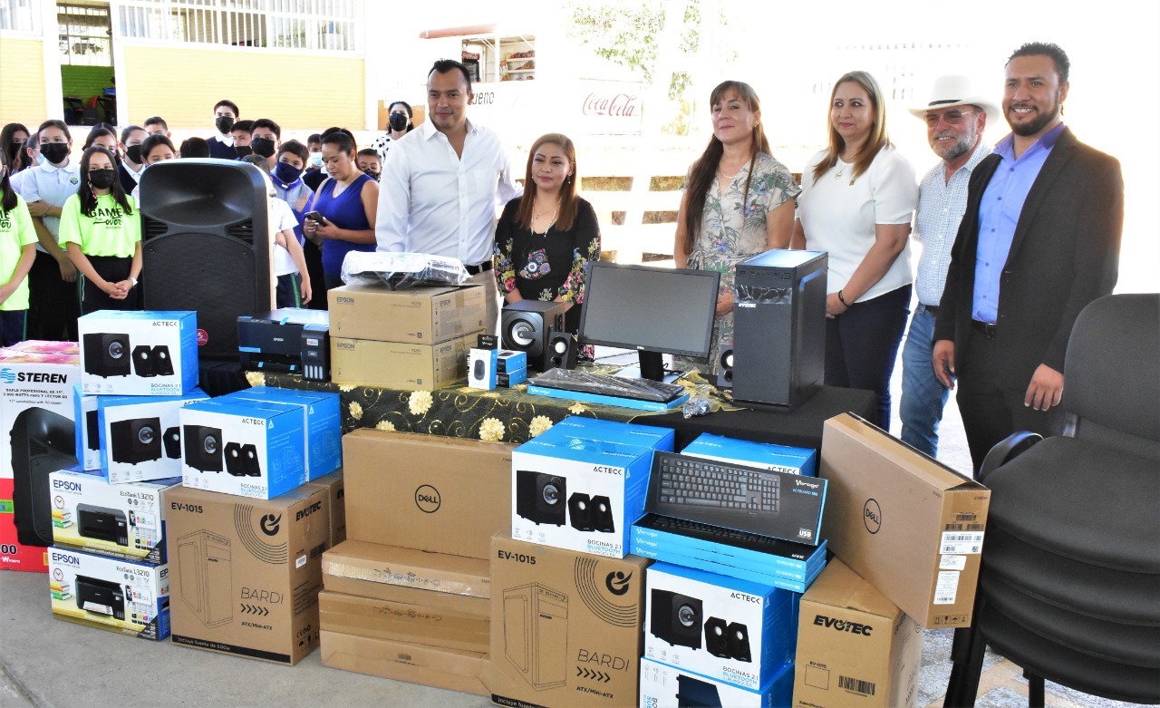 Señaló que gracias a ese importante esfuerzo, esta mañana se pudieron entregar a la primaria “Josefa Solís de Lozoya” equipo consistente en cinco computadoras, doce bocinas para computadora, dos proyectores, dos impresoras, 12 pizarrones y una bocina, que permitirán mejorar la calidad y condiciones de educación de las niñas y niños del plantel.