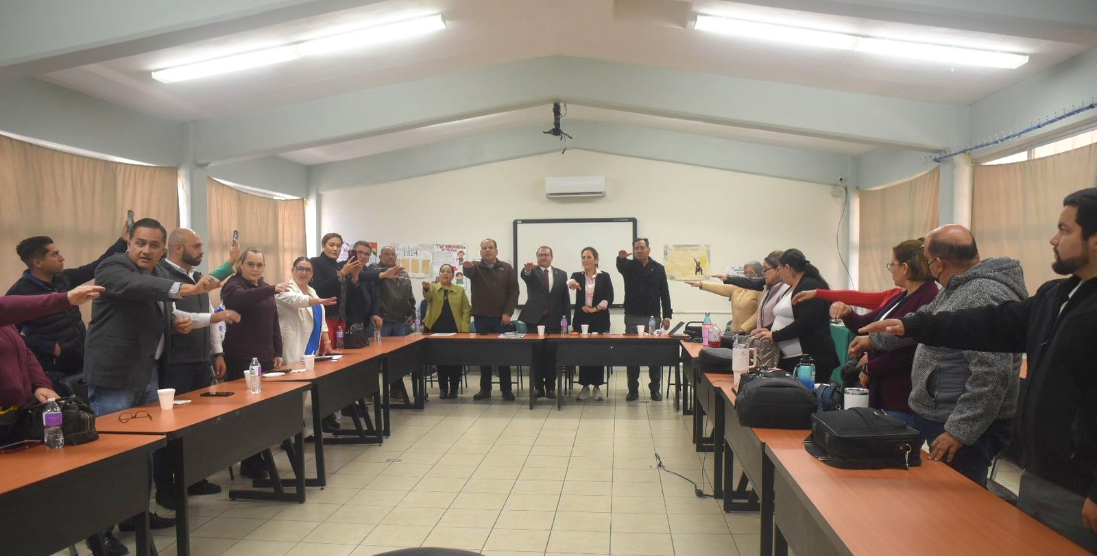 A esta reunión acudió Nora Carrillo de Calderón, presidenta del DIF Municipal; Eva Espinoza, directora del CONALEP 156; Omar Bazán, director del Colegio Nacional de Educación Profesional Técnica (CONALEP) del Estado de Chihuahua, así como diferentes autoridades educativas y funcionarios de Gobierno del Estado.