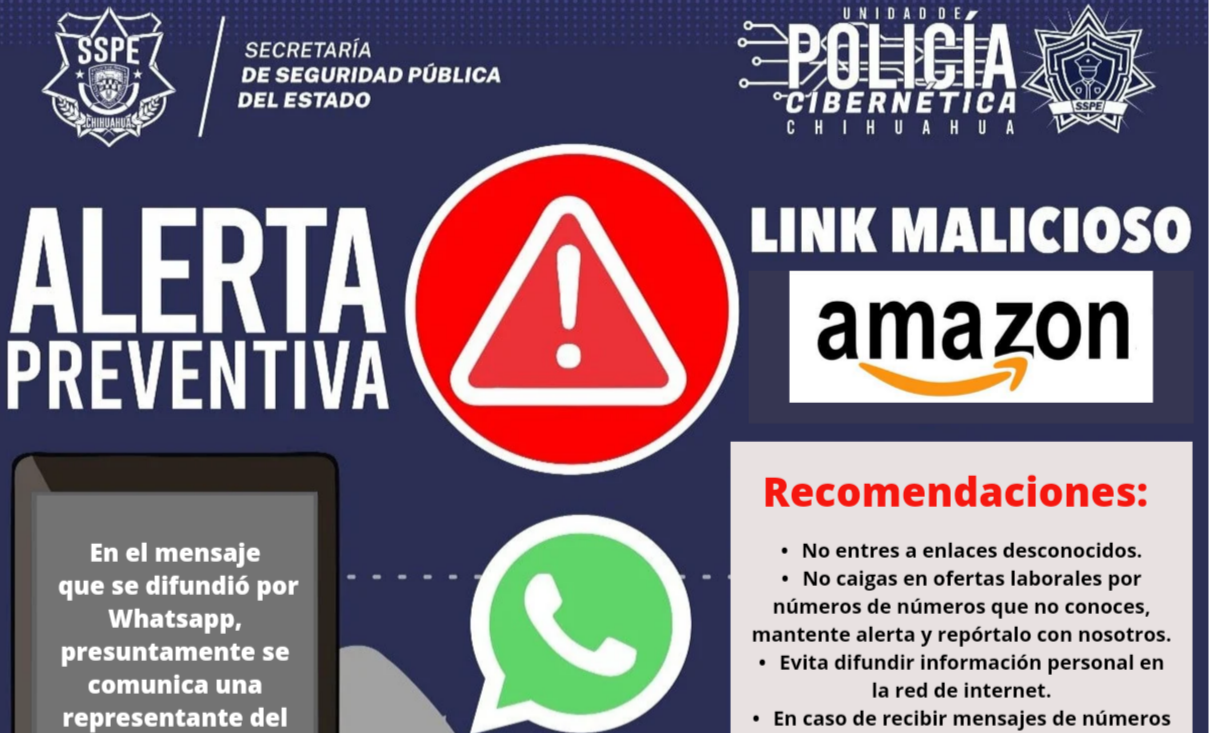 La Secretaría de Seguridad Pública del Estado (SSPE) a través de la Unidad de Policía Cibernética, alertó a la población sobre un método de fraude que se realiza vía WhatsApp, mediante el cual ofertan empleo en la compañía Amazon.