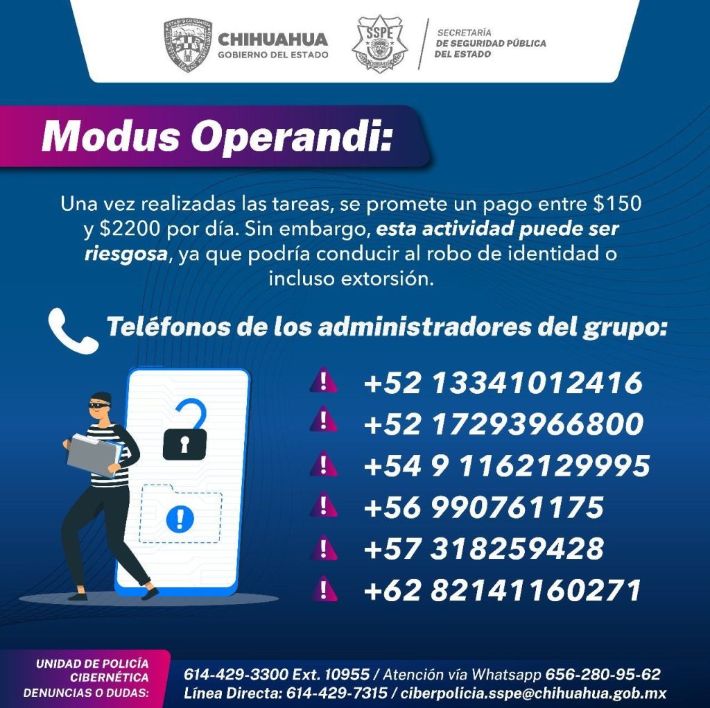 La Unidad de Policía Cibernética de la Secretaría de Seguridad Pública del Estado (SSPE) ha detectado una posible amenaza a través de redes sociales, disfrazada como una actividad de reclutamiento de personas para trabajos en línea.