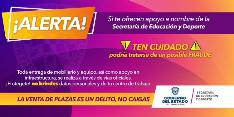 La Secretaría de Educación y Deporte (SEyD), alertó a autoridades municipales y educativas, así como al público en general, ante un método de estafa vía telefónica, en el que presuntos “funcionarios” de la dependencia ofrecen la entrega de mobiliario, equipo de trabajo o plazas docentes, a cambio de una remuneración económica.