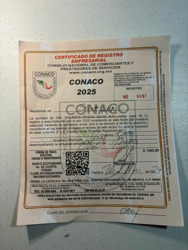 Dicho fraude fue reportado recientemente a la corporación, y de acuerdo a datos obtenidos representantes de dicha cámara acude a los negocios para solicitar un cobro por un monto de $1090.00 pesos para obtener un QR en donde podrán registrarse.