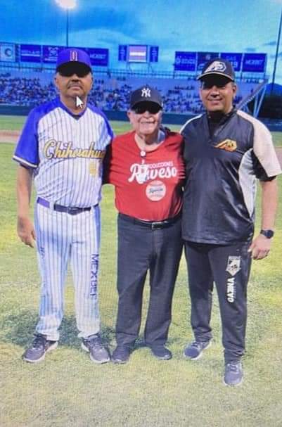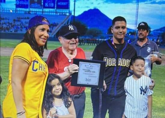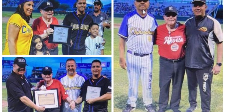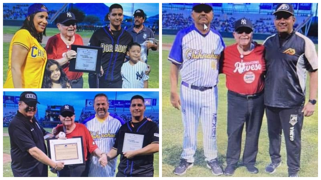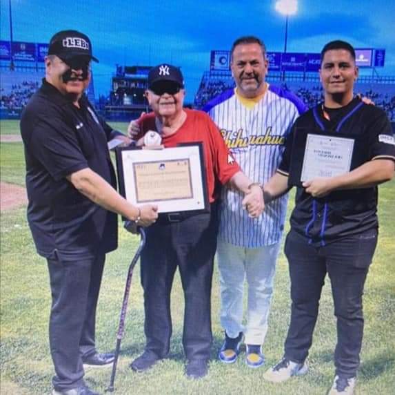 Y ahora, en Chihuahua, ni más ni menos que cuando se cantó el playball de la serie final, el Gobierno del Estado por conducto de Teporaca Romero le entregó una preciosa placa con la firma de la Gobernadora Maru Campos y la de Teporaca por el Instituto Chihuahuense del deporte.