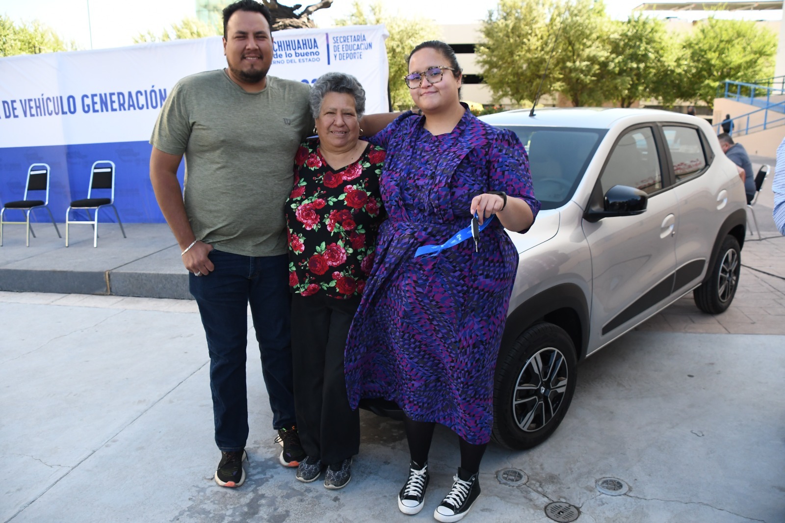 El acto se efectuó en la Plaza de la Revolución, a un costado del Edificio Héroes de la Revolución, donde recibió las llaves de un vehículo Renault Kwid 2025, con un valor aproximado de 270 mil pesos. La joven estuvo acompañada por familiares y amigos.