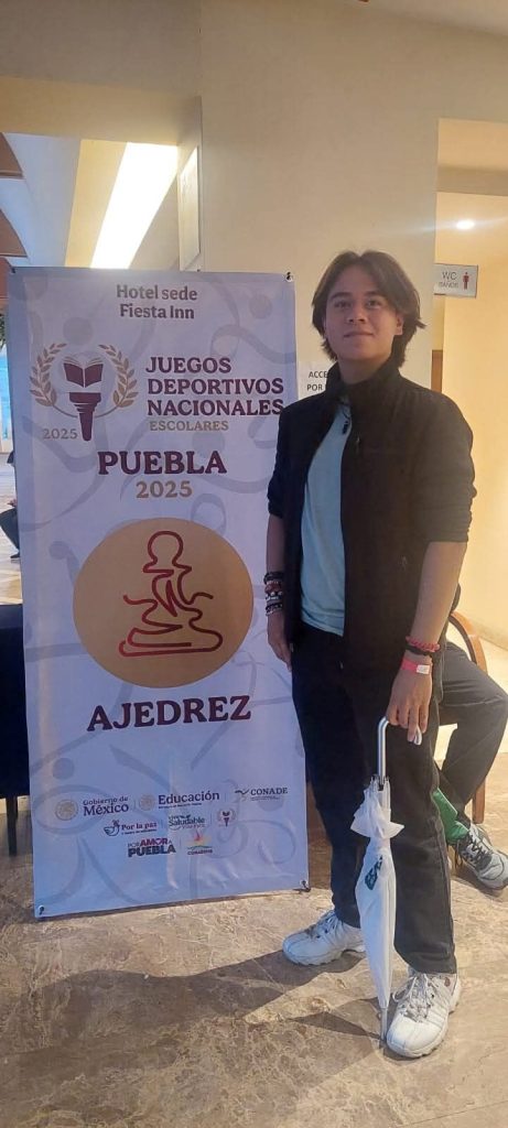 El estudiante Jorge Luis Kan Holguín, del Colegio de Bachilleres Plantel 12 de Parral, tuvo una destacada participación en la disciplina de ajedrez durante los Juegos Deportivos Nacionales de la Educación Media Superior (JUDENEMS) 2025, celebrados en la ciudad de Puebla del 15 al 22 de junio.
