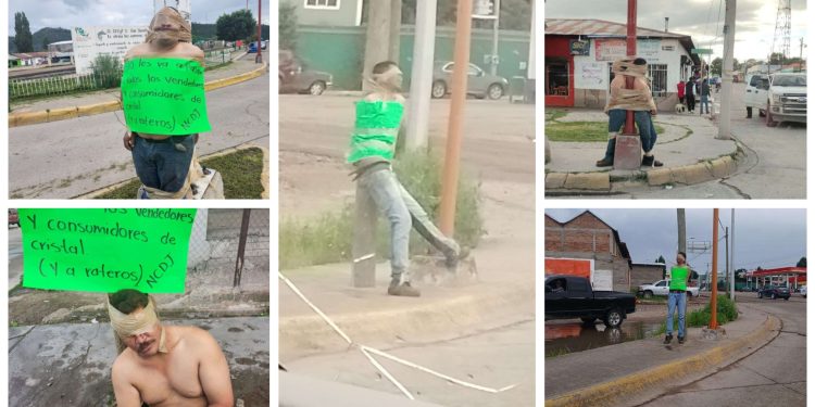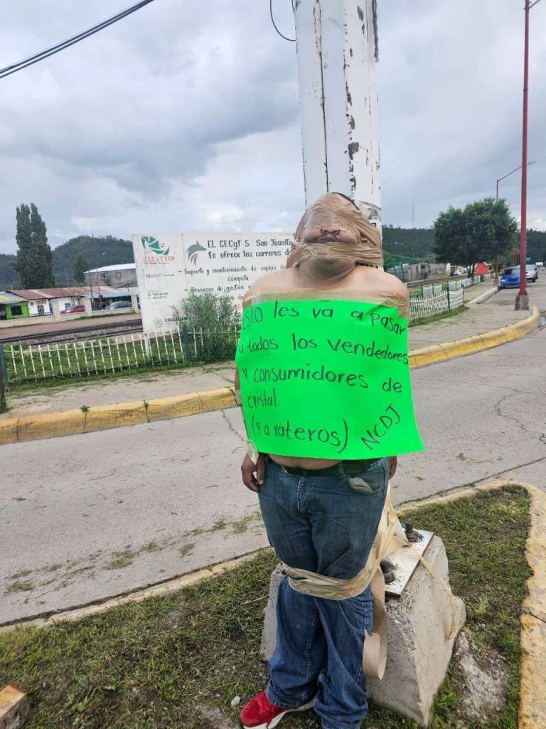 A unas horas de que agentes de la Secretaría de Seguridad Pública del Estado (SSPE), fueran atacados a balazos en San Juanito, municipio de Bocoyna, siete hombres fueron amarrados a postes en la calle principal y a varios les dejaron mensajes amenazantes en cartulinas pegadas a sus cuerpos.