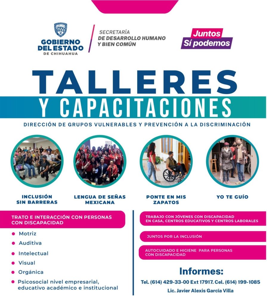 La SDHyBC indicó que todos los talleres son gratuitos, están disponibles para todo el estado y son impartidos por personal especializado de la Dirección de Grupos Vulnerables, por lo que invita a las personas interesadas a comunicarse y solicitar cualquiera de ellos que les sea de utilidad, al teléfono (614)429-33-00 ext. 17917.