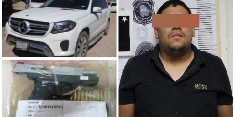 Andaba en una Mercedes Benz robada en Texas con una 9 mm fajada en la cintura