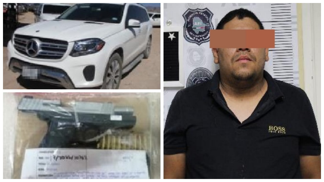 Andaba en una Mercedes Benz robada en Texas con una 9 mm fajada en la cintura