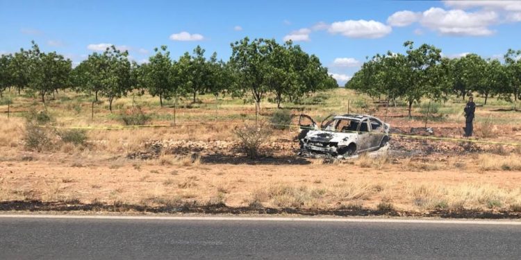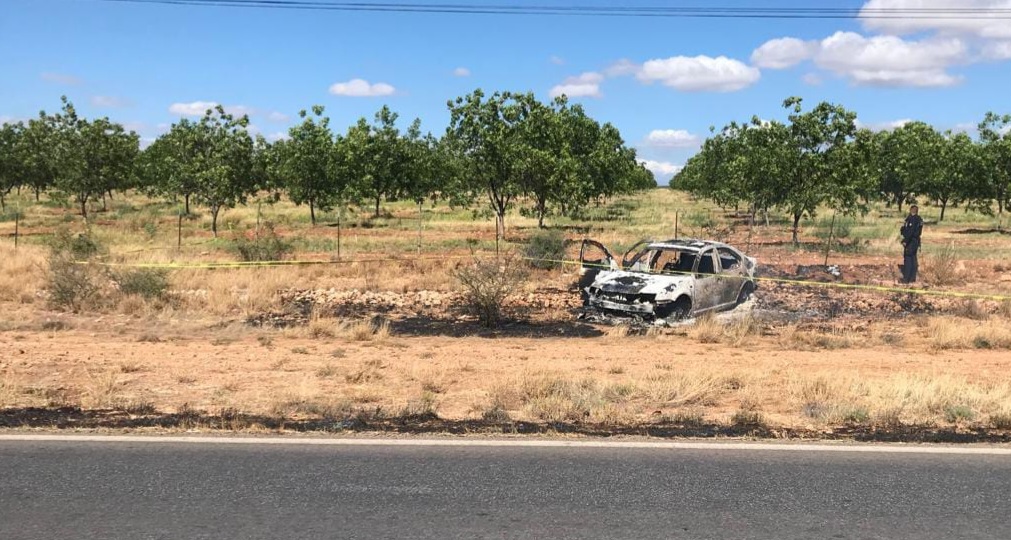 Durante los recorridos de seguridad y reconocimiento, las autoridades localizaron a tres kilómetros adentro del entronque a Valle de Allende, un automóvil marca Volkswagen, línea Jetta, modelo 1999, de color blanco, el cual se encontraba calcinado y presentó impactos de proyectil de arma de fuego en la carrocería.