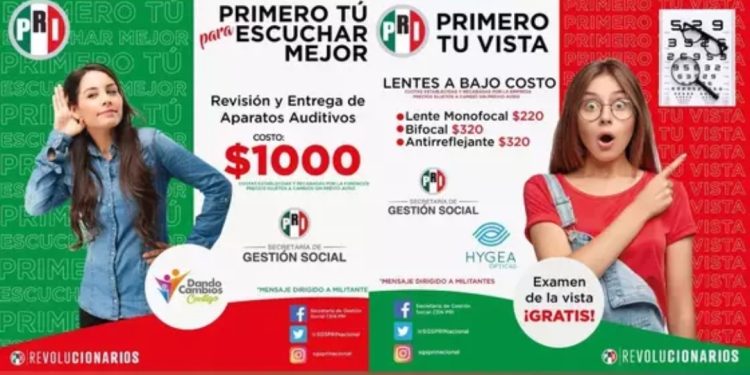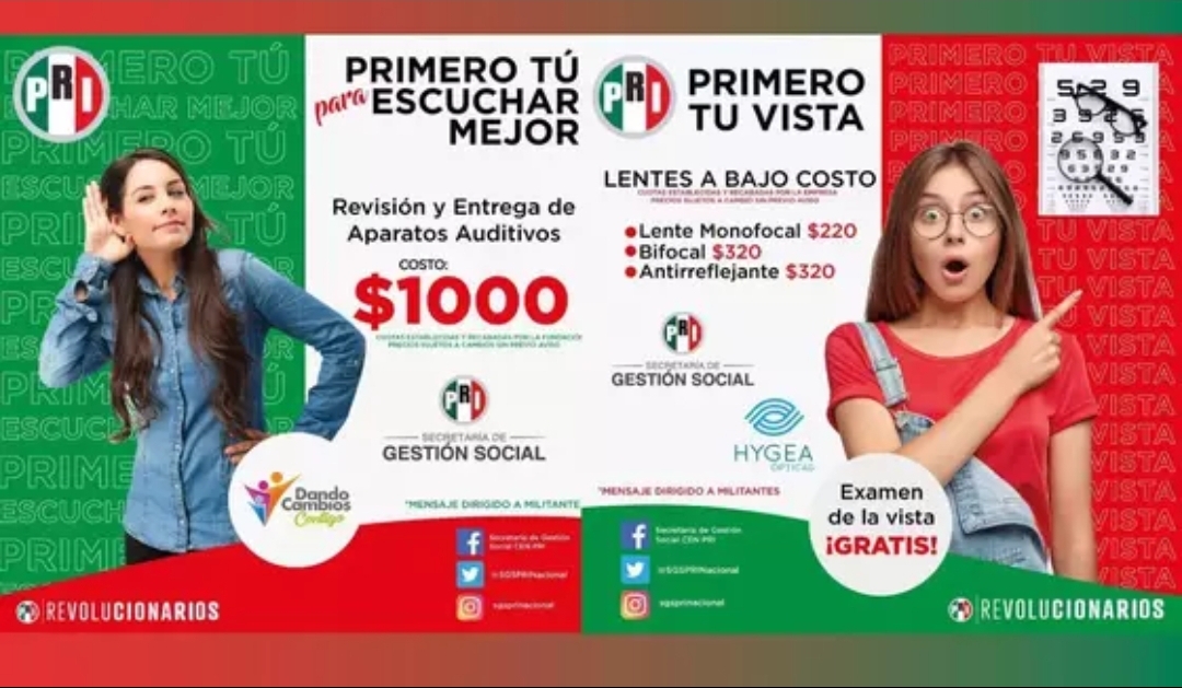 Este martes en las instalaciones del Comité Directivo Municipal del PRI, se estarán realizando exámenes de la vista y el oído, así como entregas de lentes y aparatos auditivos a bajo costo.