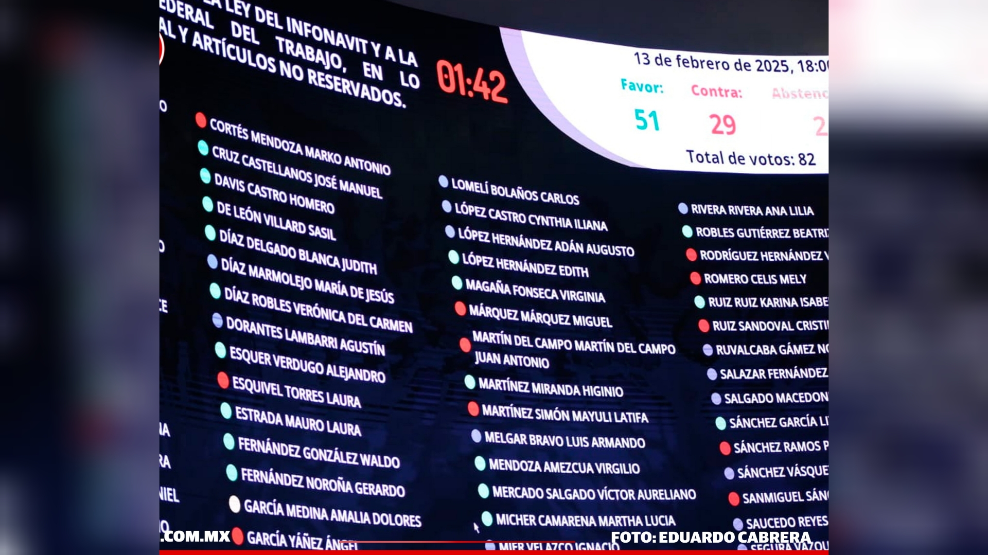 La reforma aprobada en lo general por 71 votos a favor, 36 en contra y dos abstenciones y en lo particular fue turnada al Ejecutivo Federal para su publicación en el Diario Oficial de la Federación (DOF) que crea una empresa filial, encargada de la construcción habitacional, que no será una entidad paraestatal