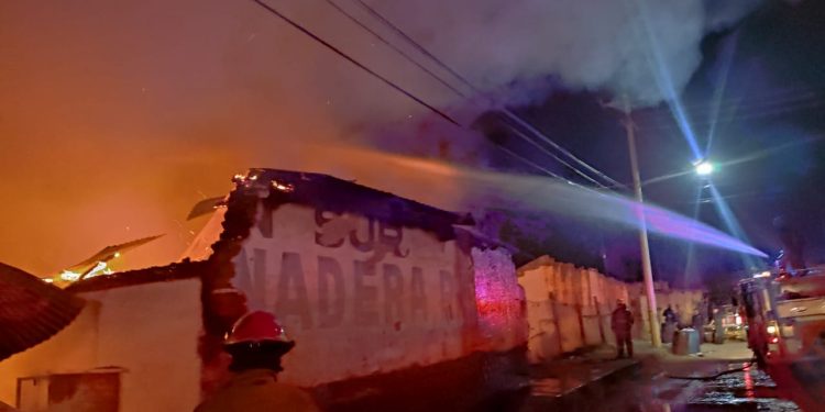 Lo que comenzó como un simple incendio de pasto, se transformó en un siniestro de grandes dimensiones que arrasó con una bodega sobre la calle Alamillo, justo a espaldas del hospital del IMSS.