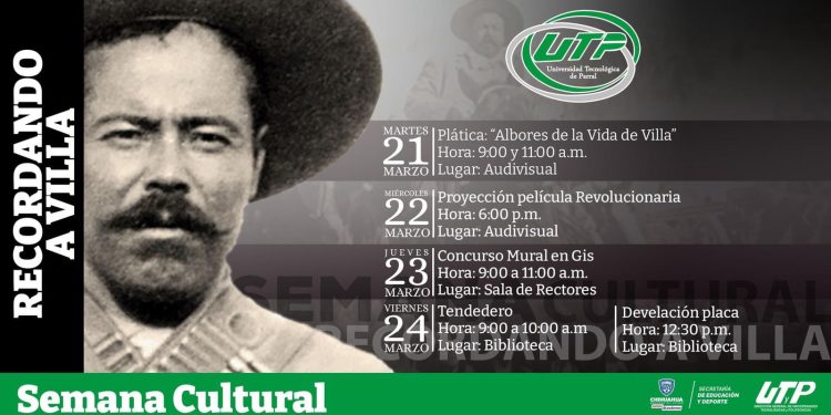 Este martes 21 de marzo, arranca la Semana Cultural “Recordando a Villa” en la Universidad Tecnológica de Parral (UTP) con distintas actividades a propósito del centenario de la muerte del “revolucionario del pueblo”.
