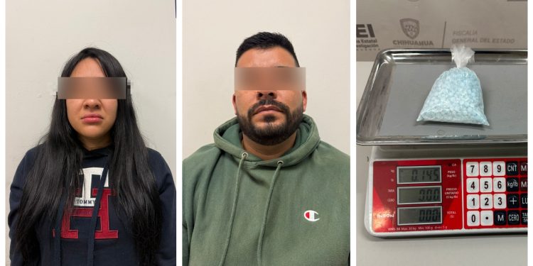 Elementos de la Agencia Estatal de Investigación adscritos a la Fiscalía de Distrito Zona Norte, detuvieron en flagrancia a Leslie Adilene R.M. y Ángel Alberto D.C. quienes se encontraban en posesión de armas de fuego y fentanilo, cuando transitaban a bordo de un vehículo por la colonia Puente Alto, en Ciudad Juárez.