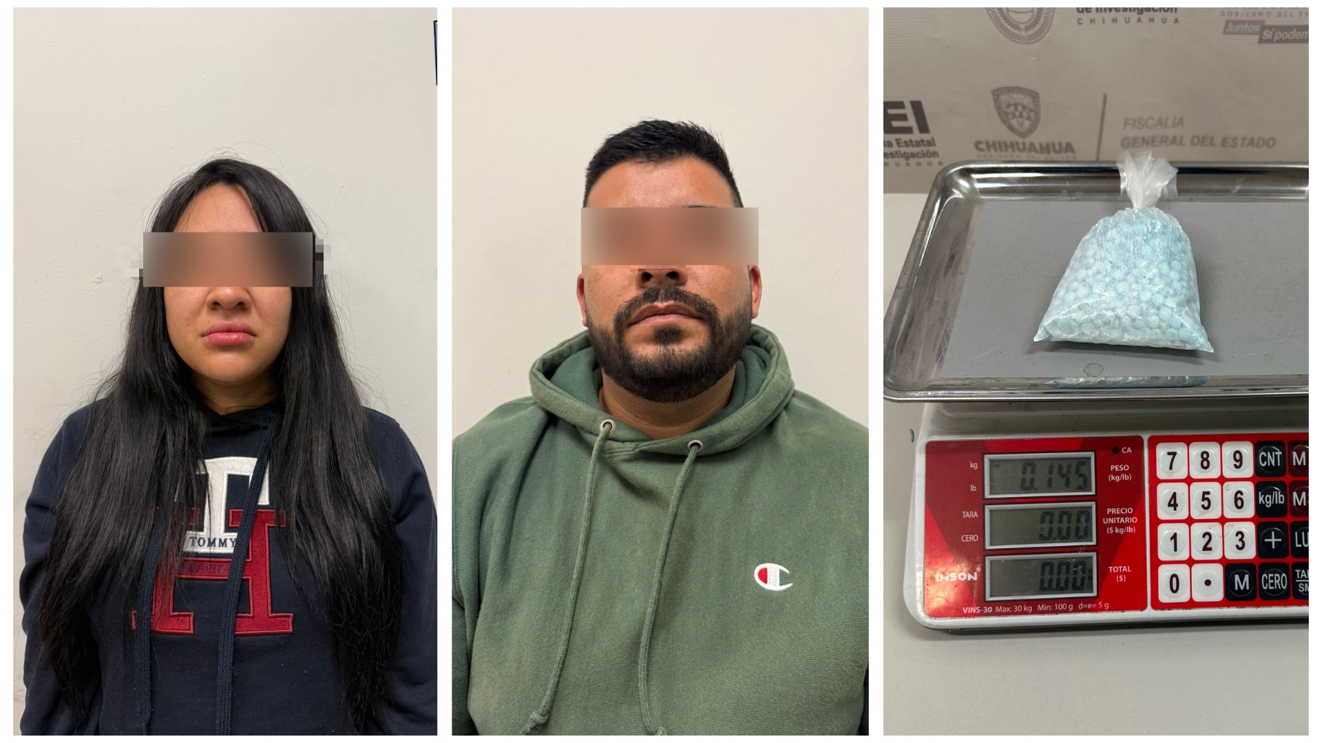 Elementos de la Agencia Estatal de Investigación adscritos a la Fiscalía de Distrito Zona Norte, detuvieron en flagrancia a Leslie Adilene R.M. y Ángel Alberto D.C. quienes se encontraban en posesión de armas de fuego y fentanilo, cuando transitaban a bordo de un vehículo por la colonia Puente Alto, en Ciudad Juárez.