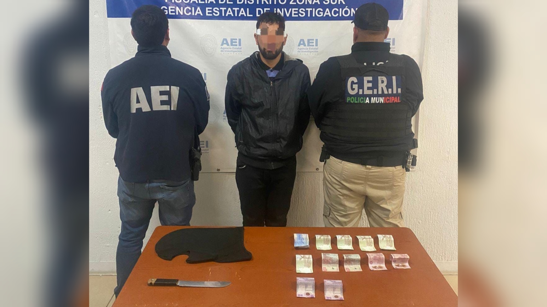 De acuerdo con la narrativa de los hechos, un sujeto portando pasamontañas, vestimenta oscura y tenis negros ingresó al establecimiento, donde presuntamente amenazó con un arma blanca a los encargados para sustraer la cantidad de dos mil pesos en efectivo, dándose posteriormente a la fuga.