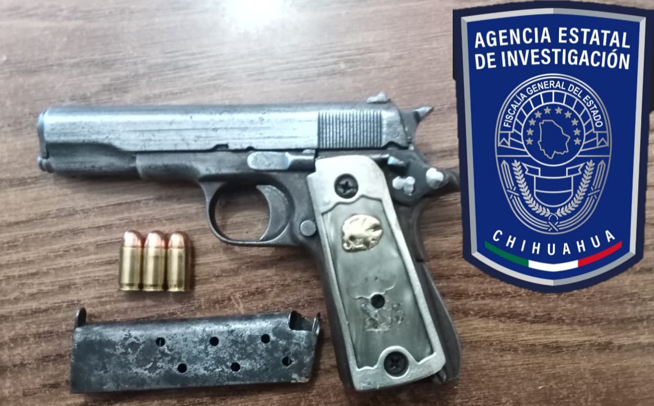 La acción se efectuó el pasado jueves por la tarde, cuando los agentes realizaban labores de investigación y se percataron de que, a un costado del camino, estaba una pistola de color gris, con cachas en color plata y café, sin marca, calibre .380, con su cargador abastecido con tres cartuchos útiles.