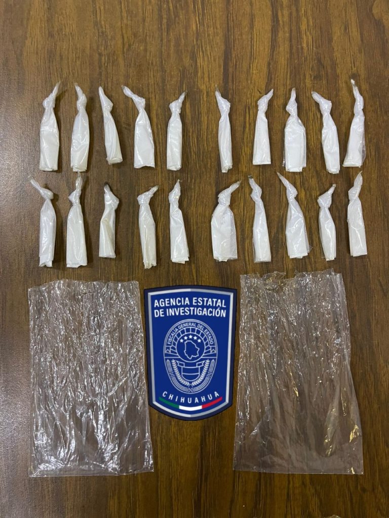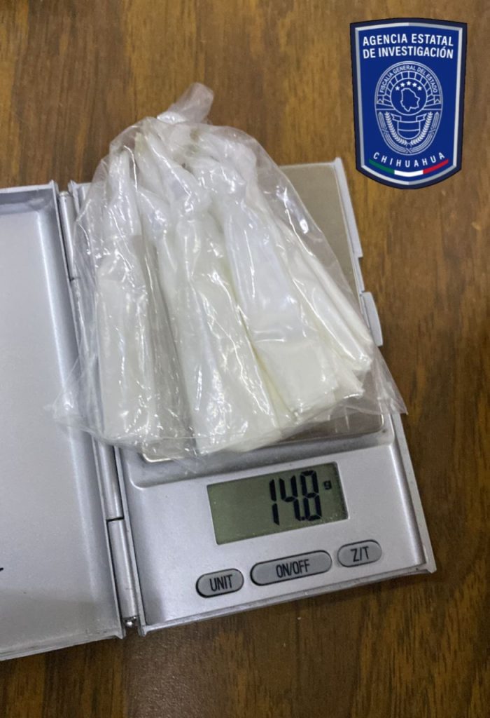De acuerdo con el reporte preliminar, el peso del narcótico asegurado es de 29.5 gramos de cocaína y 39 gramos de cristal.