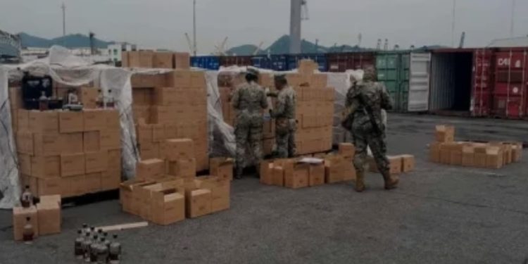 Marinos mexicanos que realizaban tareas aduaneras encontraron en un barco de carga un contenedor con 7 mil 200 botellas de un líquido transparente etiquetado como mezcal, pero que en realidad contenía metanfetamina líquida, se informó el miércoles.
