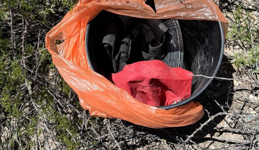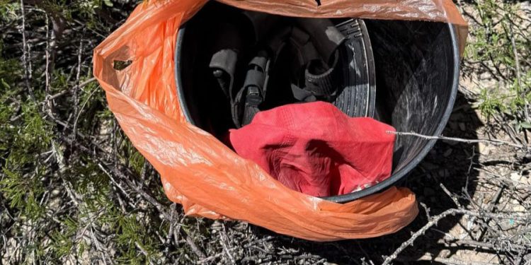 Cuando patrullaban por el lugar conocido como El Cerro Colorado, localizaron una cubeta con 160 cartuchos calibre .223, 20 cartuchos calibre 7.62×39, así como cuatro cargadores, dos para cada uno de los citados calibres.