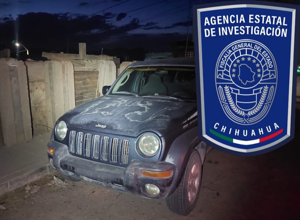 Elementos de la Agencia Estatal de Investigación (AEI) con destacamento en la ciudad de Parral, localizaron y aseguraron un vehículo de la marca Jeep, línea Liberty, modelo 2002, de color azul, que contaba con reporte de robo.